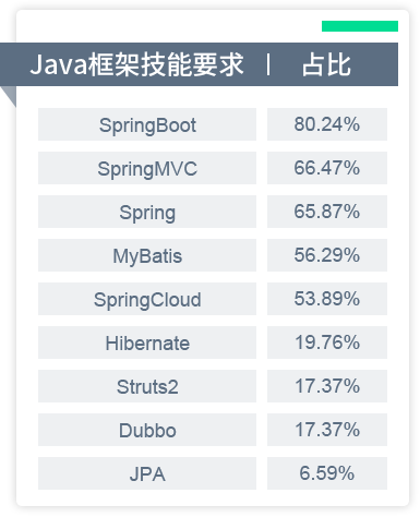 企业对于Java开发工程师技术需求占比,要求一专多能
